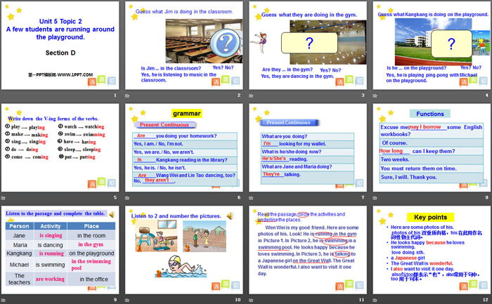 《A few students are running around the playground》PPT,第三部分内容:Key points