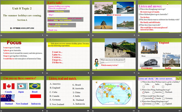 关键词:仁爱版七年级下册英语PPT课件免费下载,《The summer holidays are coming》PPT下载,.PPT格式;