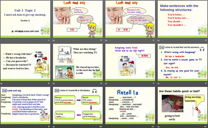关键词:仁爱版八年级上册英语PPT课件免费下载,《I must ask him to give up smoking》PPT下载,.PPT格式;