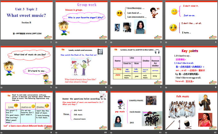 关键词:仁爱版八年级上册英语PPT课件免费下载,《What sweet music?》PPT下载,.PPT格式;