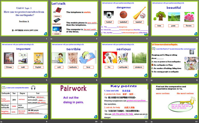关键词:仁爱版八年级上册英语PPT课件免费下载,《How can we protect ourselves from the earthquake?》PPT下载,.PPT格式;
