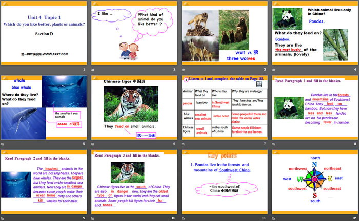 关键词:仁爱版八年级上册英语PPT课件免费下载,《Which do you like betterplants or animals?》PPT下载,.PPT格式;