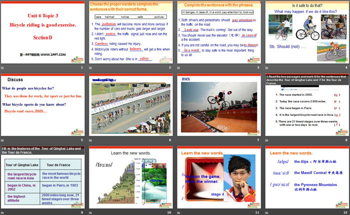 《Bicycle riding is good exercise》SectionD PPT