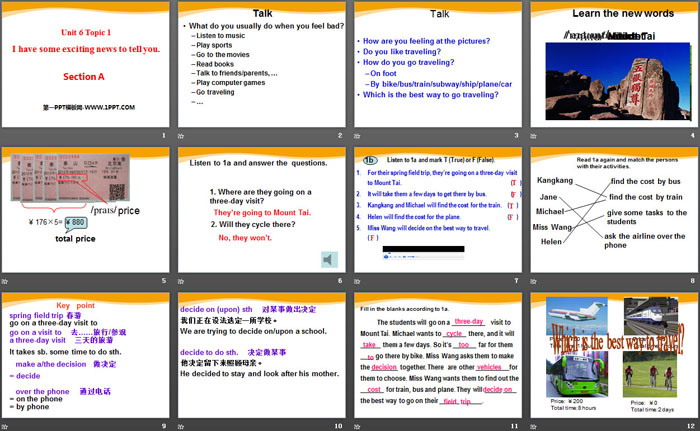 1.For their spring field trip, they’re going on a three-day visit to Mount Tai. ( )