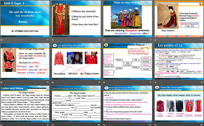 关键词:仁爱版八年级下册英语PPT课件免费下载,《He said the fashion show was wonderful》PPT下载,.PPT格式;