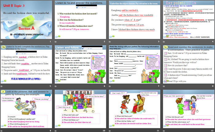 《He said the fashion show was wonderful》SectionA PPT