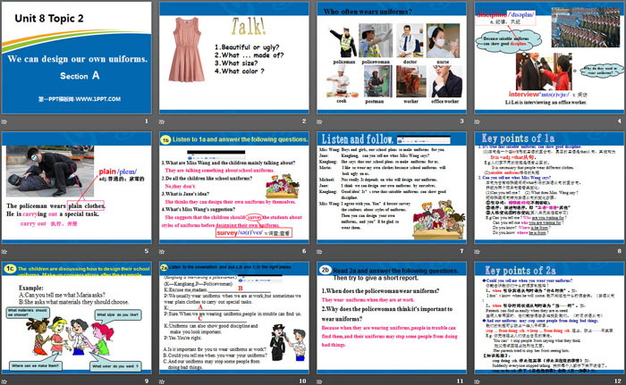 关键词:仁爱版八年级下册英语PPT课件免费下载,《We can design our own uniforms》PPT下载,.PPT格式;