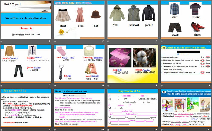 关键词:仁爱版八年级下册英语PPT课件免费下载,《We will have a class fashion show》PPT下载,.PPT格式;