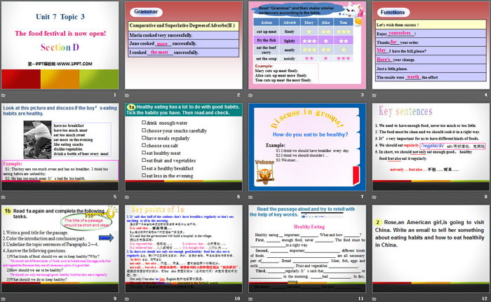 关键词:仁爱版八年级下册英语PPT课件免费下载,《The food festival is now open》PPT下载,.PPT格式;