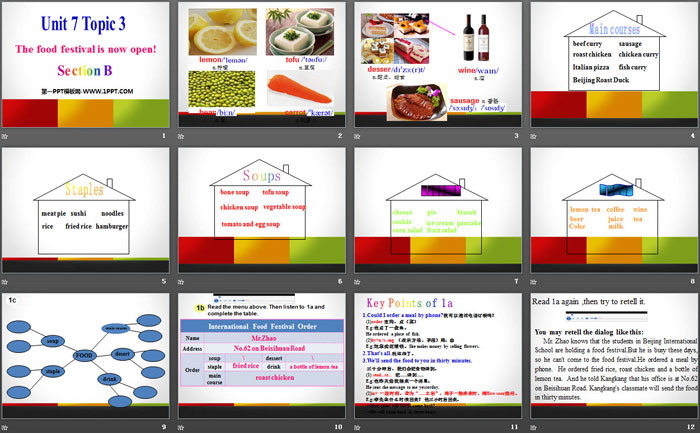 关键词:仁爱版八年级下册英语PPT课件免费下载,《The food festival is now open》PPT下载,.PPT格式;