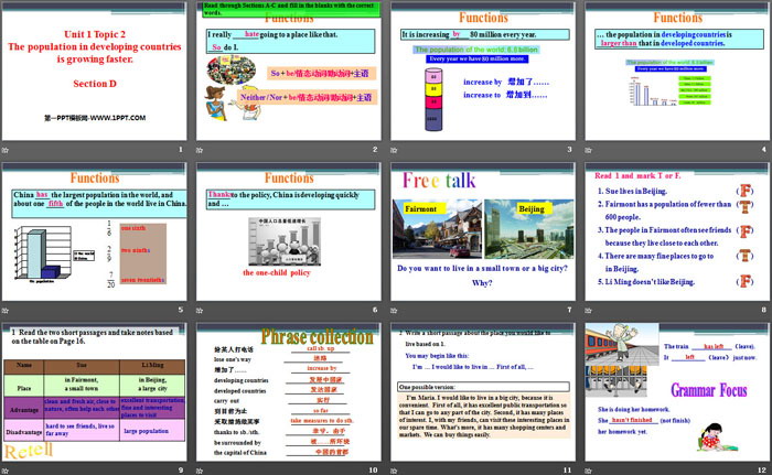 关键词:仁爱版九年级上册英语PPT课件免费下载,《The population in developing countries is growing faster》PPT下载,.PPT格式;