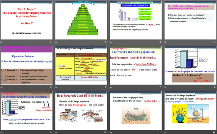 关键词:仁爱版九年级上册英语PPT课件免费下载,《The population in developing countries is growing faster》PPT下载,.PPT格式;