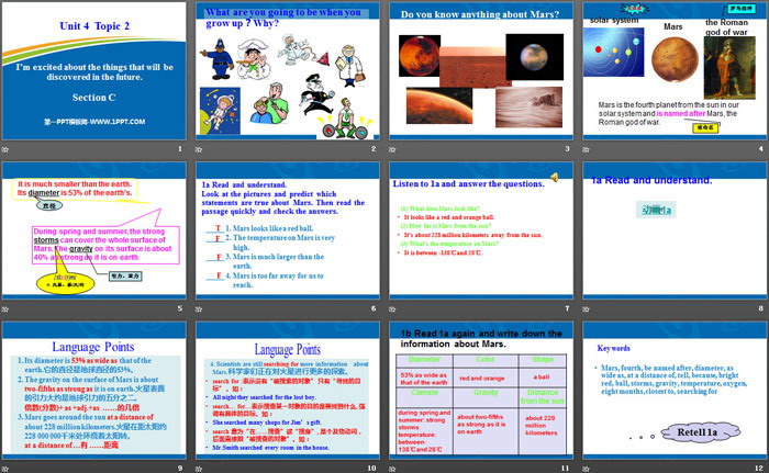 关键词:仁爱版九年级上册英语PPT课件免费下载,《I'm excited about the things that will be discovered in the future》PPT下载,.PPT格式;