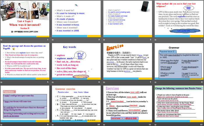 关键词:仁爱版九年级上册英语PPT课件免费下载,《When was it invented?》PPT下载,.PPT格式;