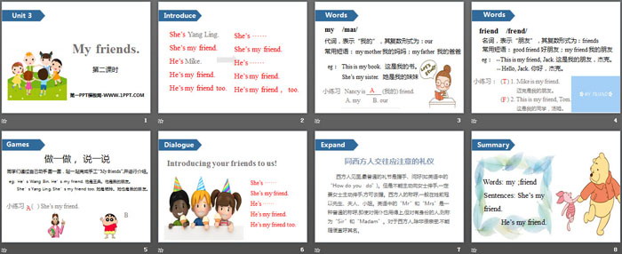 关键词:牛津译林版三年级上册英语PPT课件免费下载,My friendsPPT下载,.PPT格式;