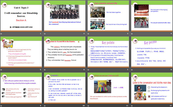 关键词:仁爱版九年级下册英语PPT课件免费下载,《I will remember our friendship forever》PPT下载,.PPT格式;