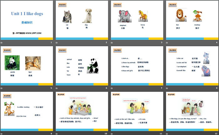 关键词:牛津译林版四年级上册英语PPT课件免费下载,I like dogsPPT下载,.PPT格式;