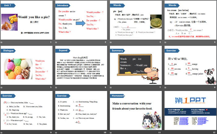 关键词:牛津译林版三年级上册英语PPT课件免费下载,Would you like a pie?PPT下载,.PPT格式;