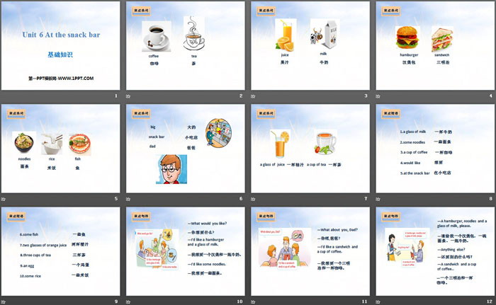 关键词:牛津译林版四年级上册英语PPT课件免费下载,At the snack barPPT下载,.PPT格式;