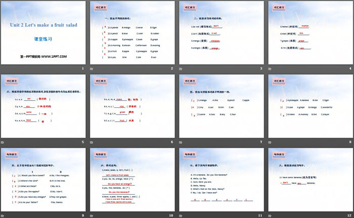 《Let's make a fruit salad》课堂练习PPT