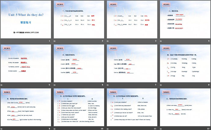 关键词:牛津译林版五年级上册英语PPT课件免费下载,What do they do?PPT下载,.PPT格式;