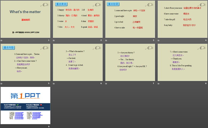 What's the matter?PPT,第三部分内容:重点句型