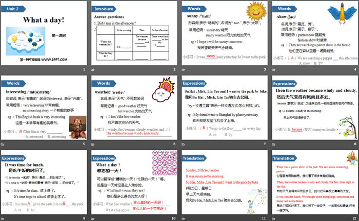 关键词:牛津译林版六年级上册英语PPT课件免费下载,What a day!PPT下载,.PPT格式;