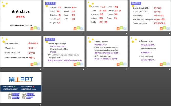 BrithdaysPPT,第二部分内容:重点短语