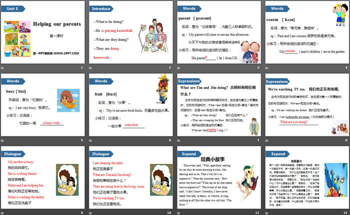 关键词:牛津译林版五年级下册英语PPT课件免费下载,Helping our parentsPPT下载,.PPT格式;