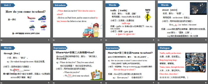 关键词:牛津译林版五年级下册英语PPT课件免费下载,How do you come to school?PPT下载,.PPT格式;
