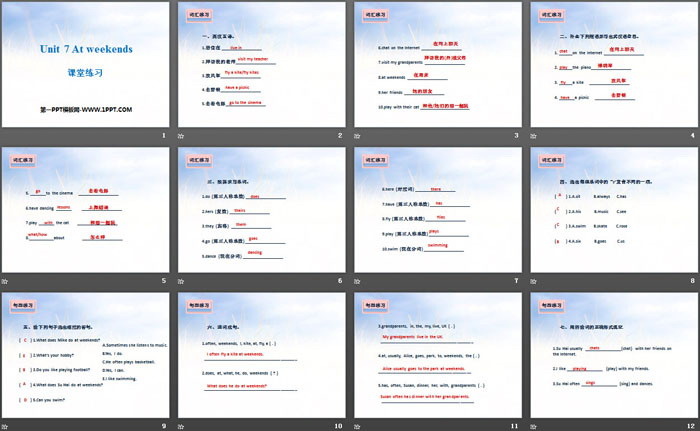 At weekendsPPT,第二部分内容:句型练习