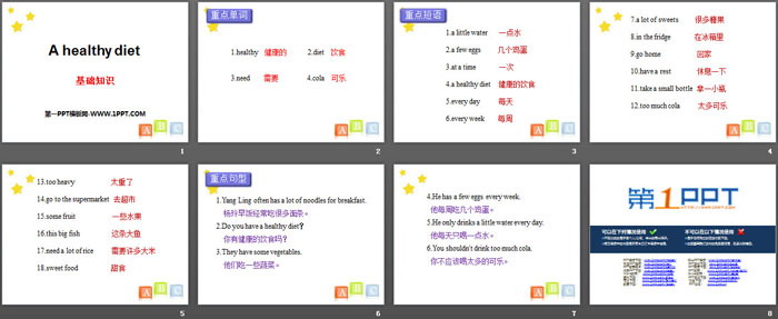 A healthy dietPPT,第二部分内容:重点短语