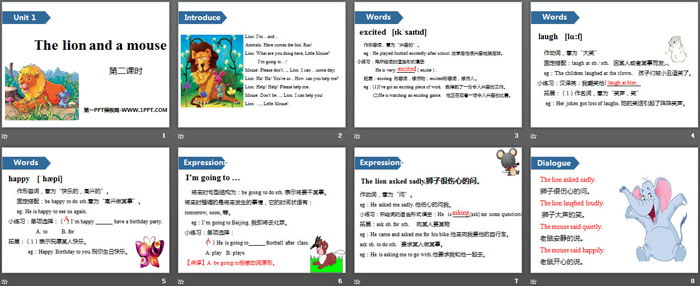 关键词:牛津译林版六年级下册英语PPT课件免费下载,The lion and a mousePPT下载,.PPT格式;