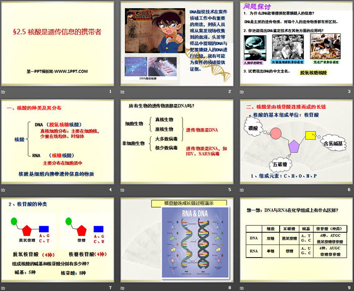关键词:人教版高中生物必修一PPT课件免费下载,核酸是遗传信息的携带者PPT下载,组成细胞的分子PPT下载,.PPT格式;