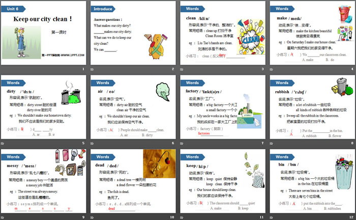 关键词:牛津译林版六年级上册英语PPT课件免费下载,Keep our city cleanPPT下载,.PPT格式;