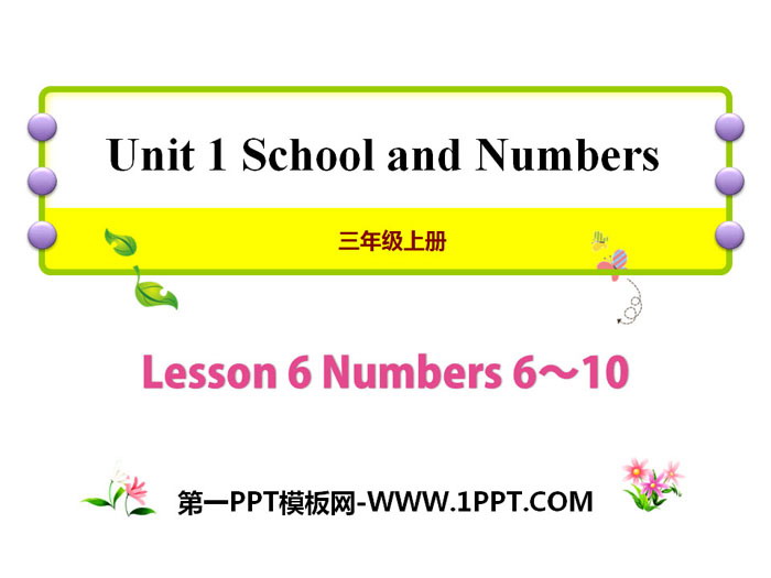关键词:冀教版三年级上册英语PPT课件免费下载,Numbers6~10PPT下载,School and NumbersPPT下载,.PPT格式;