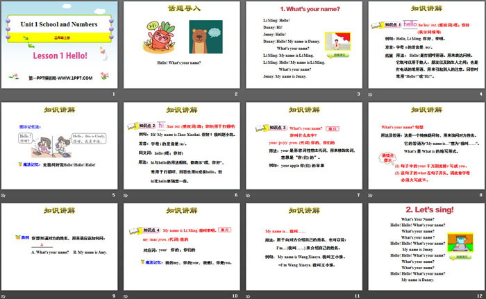 关键词:冀教版三年级上册英语PPT课件免费下载,Hello!PPT下载,School and NumbersPPT下载,.PPT格式;