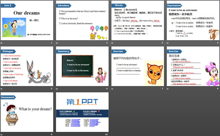 关键词:牛津译林版六年级下册英语PPT课件免费下载,Our dreamsPPT下载,.PPT格式;