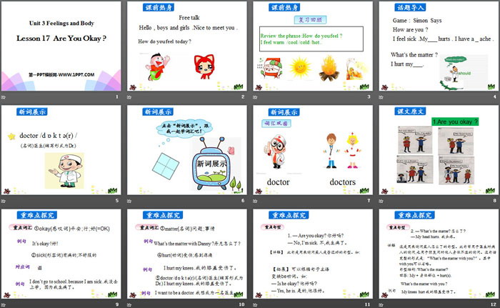关键词:冀教版三年级上册英语PPT课件免费下载,Are You Okay?PPT下载,Feelings and BodyPPT下载,.PPT格式;