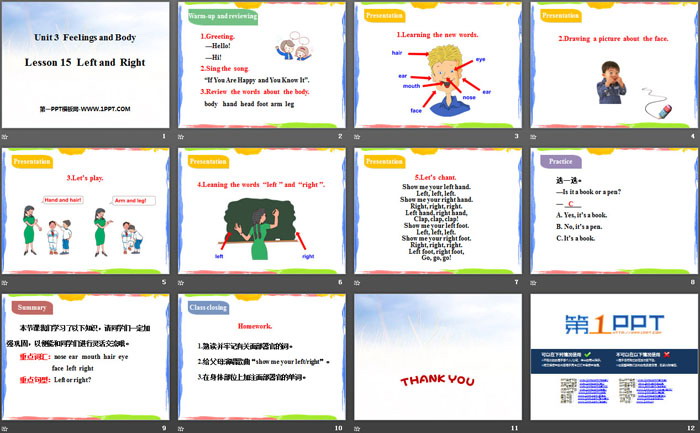 关键词:冀教版三年级上册英语PPT课件免费下载,Left and RightPPT下载,Feelings and BodyPPT下载,.PPT格式;