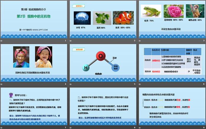 关键词:人教版高中生物必修一PPT课件免费下载,细胞中的无机物PPT下载,组成细胞的分子PPT下载,.PPT格式;