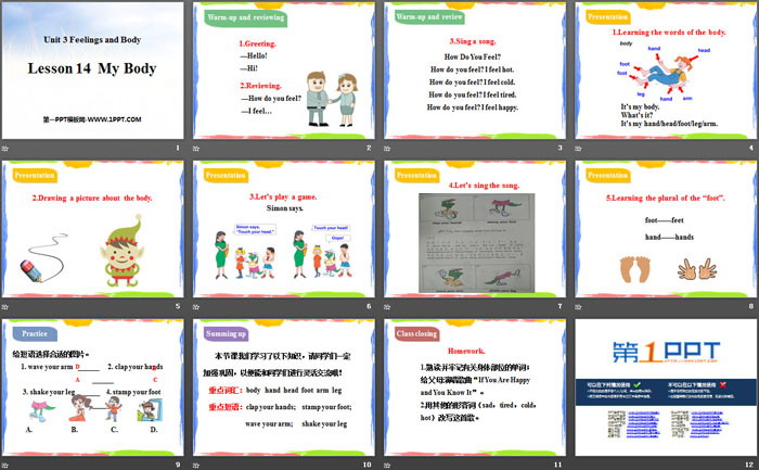 关键词:冀教版三年级上册英语PPT课件免费下载,My BodyPPT下载,Feelings and BodyPPT下载,.PPT格式;