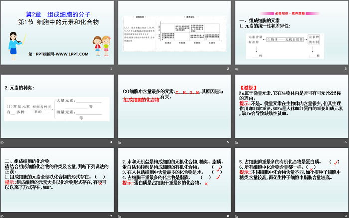 《细胞中的元素和化合物》组成细胞的分子PPT教学课件