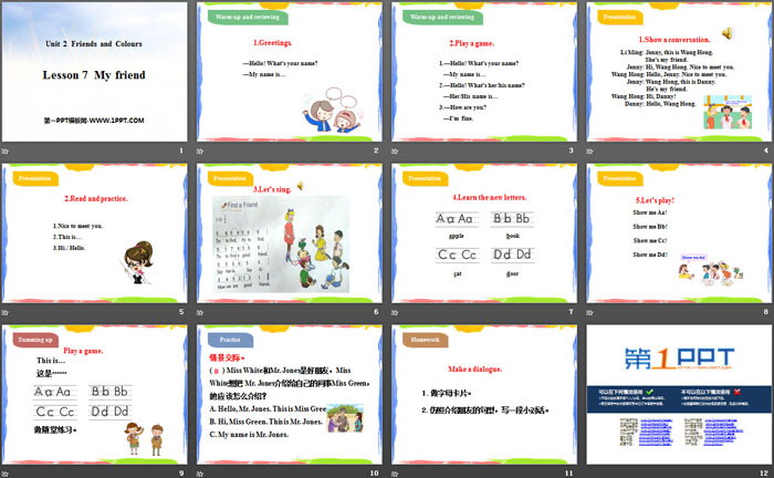 关键词:冀教版三年级上册英语PPT课件免费下载,My FriendPPT下载,Friends and ColoursPPT下载,.PPT格式;
