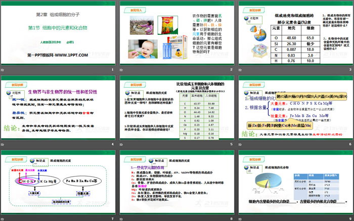 关键词:人教版高中生物必修一PPT课件免费下载,细胞中的元素和化合物PPT下载,组成细胞的分子PPT下载,.PPT格式;