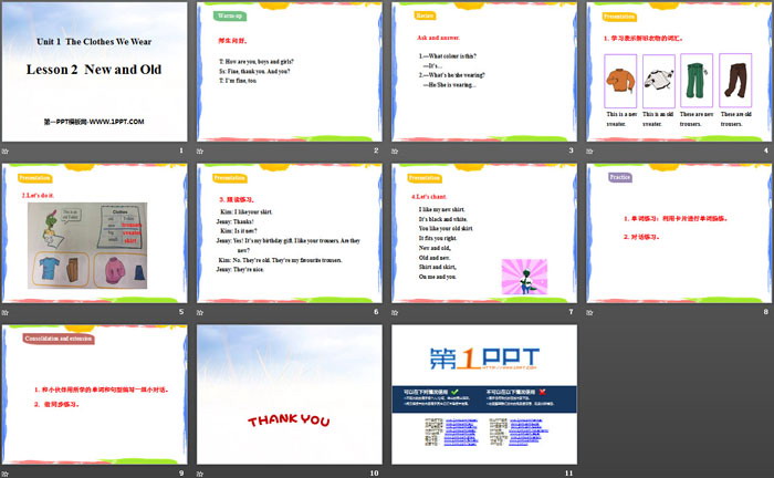 关键词:冀教版四年级上册英语PPT课件免费下载,New and OldPPT下载,The Clothes We WearPPT下载,.PPT格式;