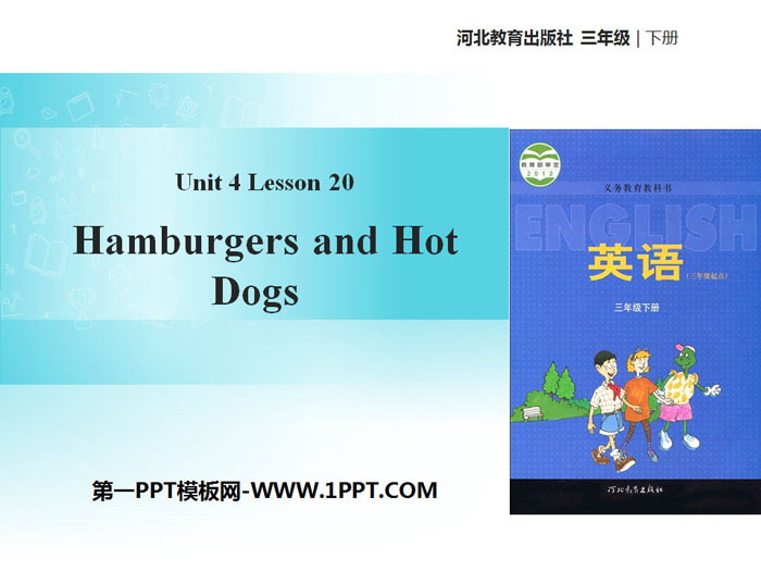 关键词:冀教版三年级下册英语PPT课件免费下载,Hamburgers and Hot DogsPPT下载,Food and RestaurantsPPT下载,.PPT格式;