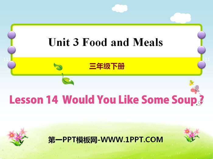 关键词:冀教版三年级下册英语PPT课件免费下载,Would You Like Some Soup?PPT下载,Food and MealsPPT下载,.PPT格式;