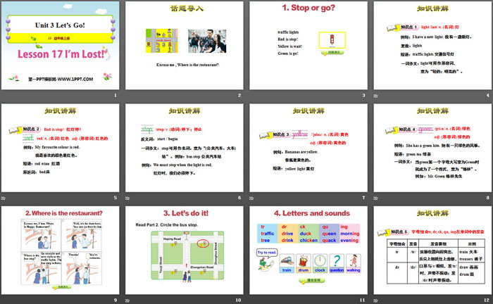 关键词:冀教版四年级上册英语PPT课件免费下载,I'm Lost!PPT下载,Let's Go!PPT下载,.PPT格式;
