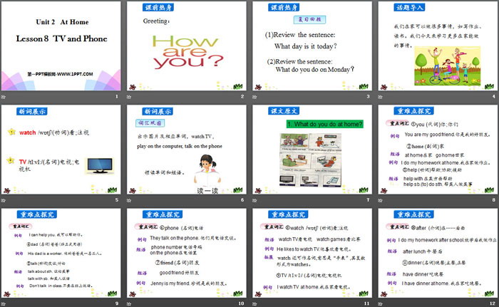 关键词:冀教版四年级上册英语PPT课件免费下载,TV and PhonePPT下载,At HomePPT下载,.PPT格式;